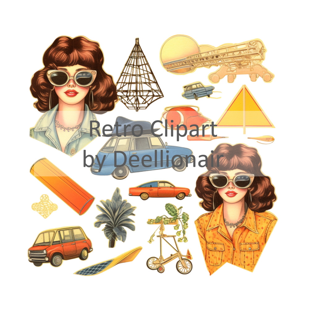 Vector Illustration Retro Clipart A - High Quality PNGs - Digital Download - Card Making, Mixed Media, Digital Paper Craft (copy)
